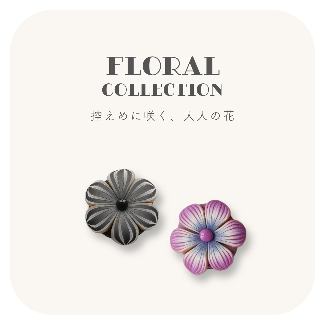 控えめに咲く、大人のためのフローラル。甘さを抑えた色と形が、装いに静かな華を添えます。