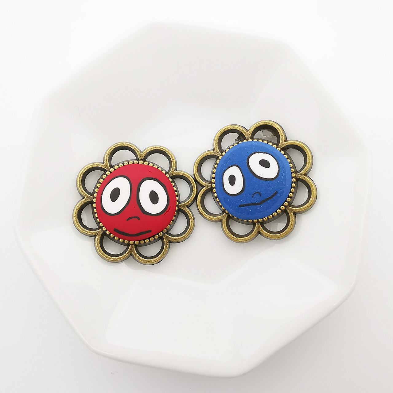 【 赤まる 青まる with flower crown】ポリマークレイ 真鍮 アクセサリー 材料 パーツ お花
